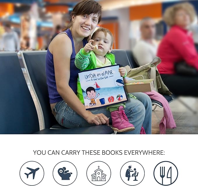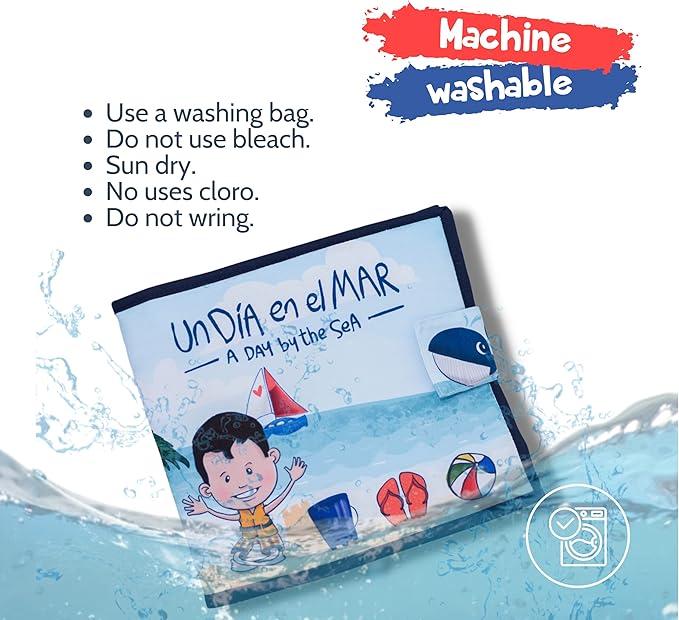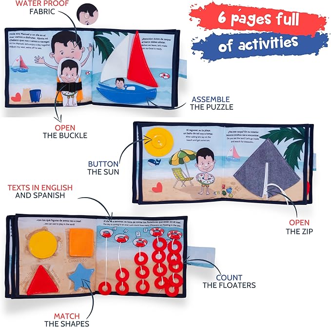 - BILINGUAL TEXTS - This is not a regular quiet book, actually, this one tells a story written in English and in Spanish, ideal for your children to learn or practice a second language. It is perfect for Spanish learning for babies. Made with soft fabric pages provide a fun texture and make learning to read fun for baby. UN DÍA EN EL MAR es el libro perfecto para que tu bebé aprenda Español como segunda lengua