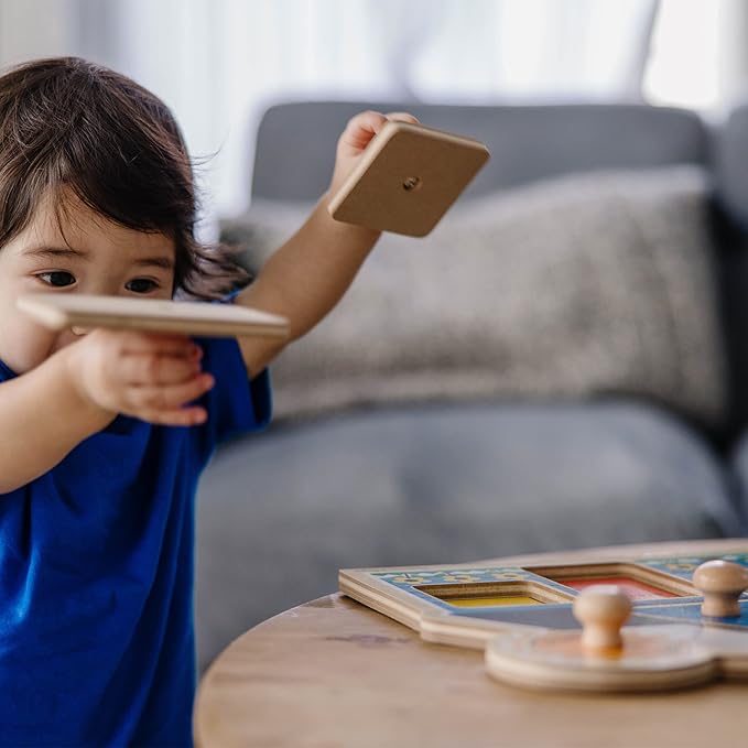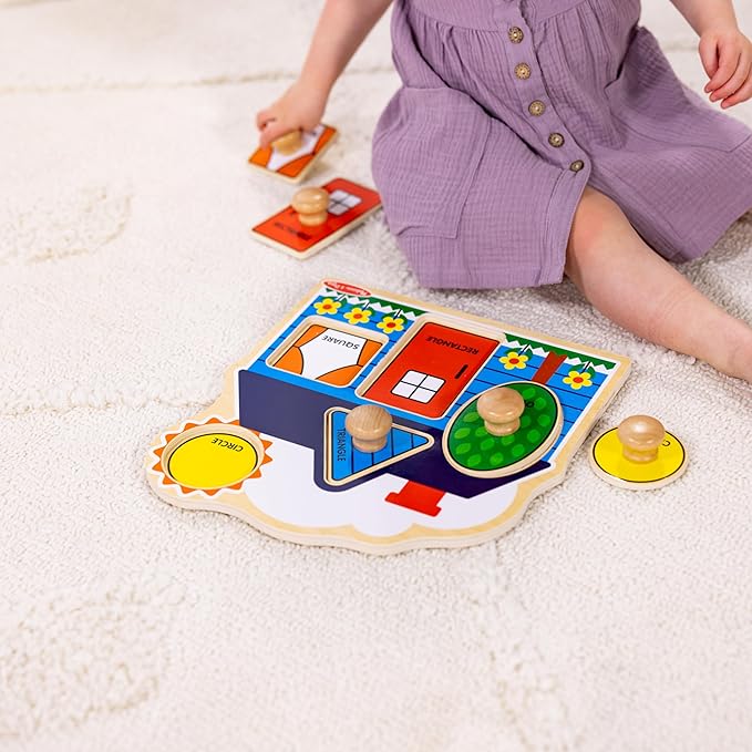 Melissa & Doug First Shapes Jumbo Knob Wooden Puzzle - Wooden Peg Chunky Baby Puzzle, Preschool Learning Shapes Knob Puzzle Board For Toddlers Ages 1+