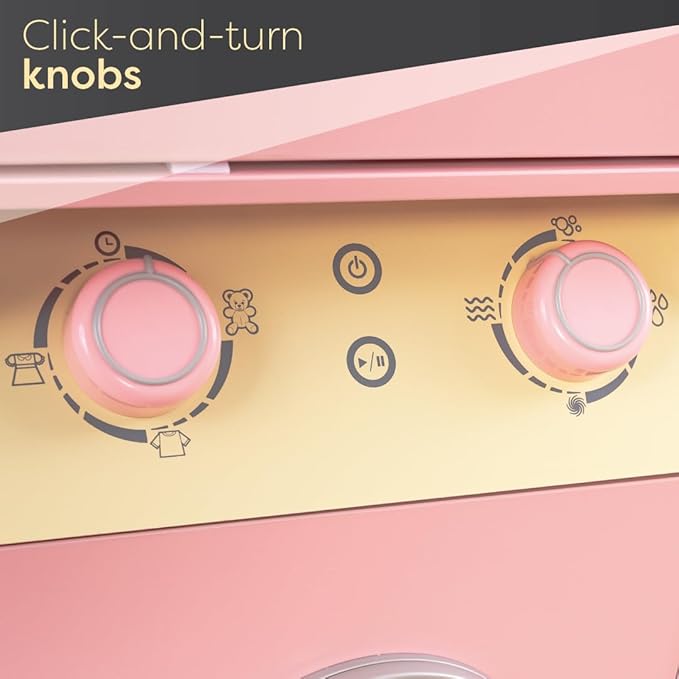 • LOADS OF HANDS-ON PLAY: Knobs to turn. Doors to open. There's plenty of opportunities for fine motor skills in this made-of-wood set that'll last through many laundry days.
