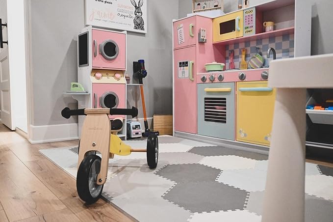 • RIGHT HEIGHT: At a little over 3 feet tall, this playset is just their size and makes them feel like they are grown up. Stacked washer/dryer combo fits easily in a playroom, bedroom or even a grown-up laundry room.