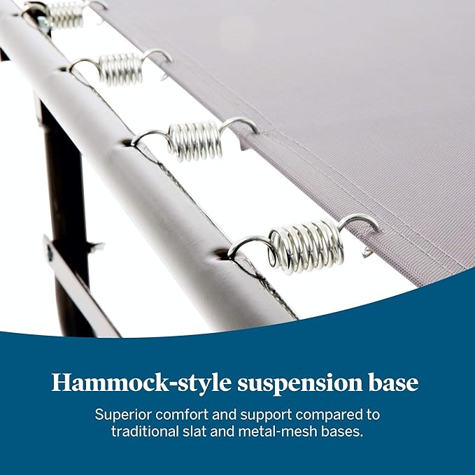- STURDY SUPPORT: The frame consists of locking wheels for safety and a spring supported deck which supports more comfortably than wood slat and wire mesh support alternatives, total weight capacity 350 pounds