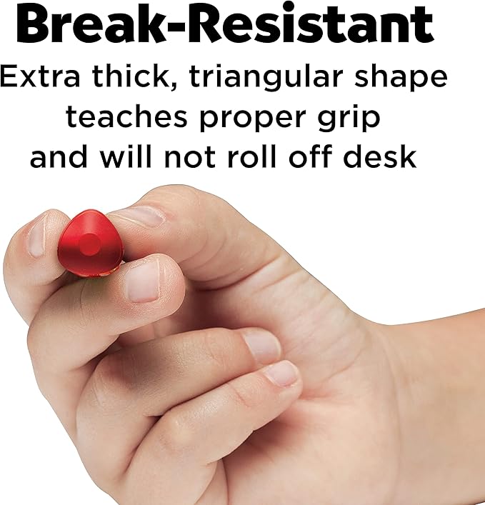 - Triangle crayons: triangular shaped crayons allows little artists to learn the proper grip. Bonus - these extra-thick, jumbo crayons will not roll off the desk!