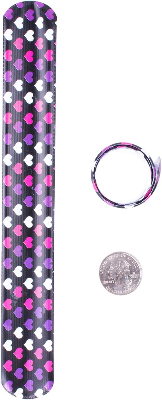 Super Z Outlet Slap On Plastic Vinyl Retro Bracelets with Colorful Hearts & Animal Print Design Patterns for Children, Toy Party Favors (72 Pack)
