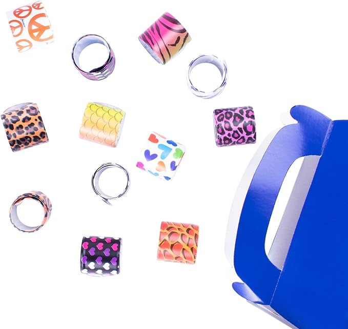 - These slap on bracelets are perfect for both children and adults! Have these creative birthday party supplies ready for your next celebretory day. They make the perfect prize in kids party favor bags, party favor boxes, mixed with pinata candy and as party favors for adults to wear.