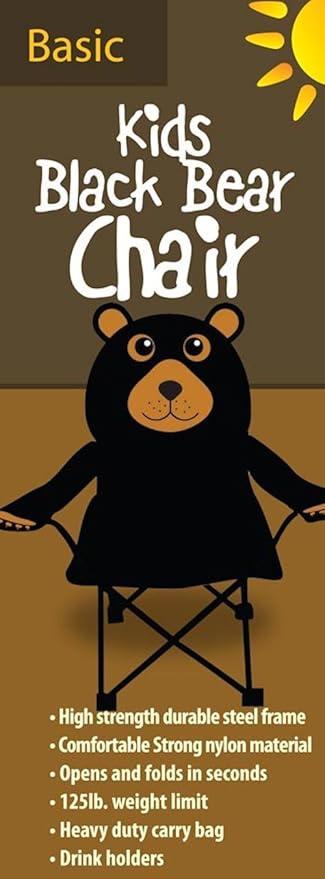 Kids Folding Camp Chair with Cup Holder and Carry Bag - Black Bear