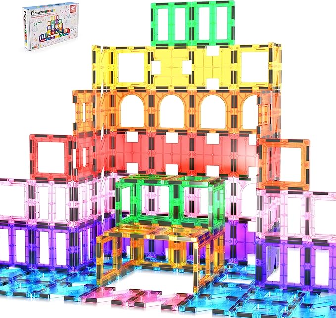 - [Bond, Learn and Play] PicassoTiles Magnetic tiles are versatile toys that evolve alongside your child. They offer more than mere building opportunities. Through enjoyable and creative play, children develop essential STEM skills including pattern recognition, understanding of magnetic principles, and problem-solving abilities. Additionally, these tiles serve as excellent sensory toys, enriching tactile experiences during playtime.