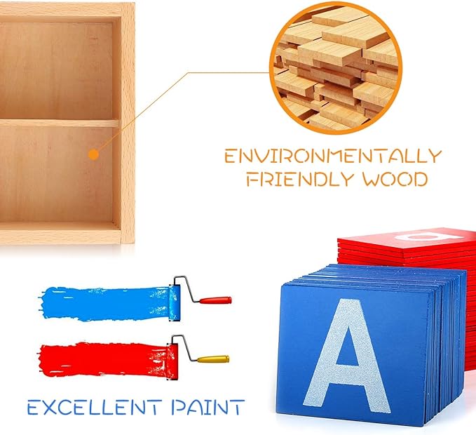 - With 2 seperate box,Small & Capital Letters,language learning montessori material