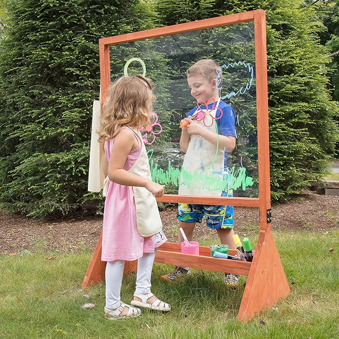 Double Sided Giant Indoor/Outdoor Plexiglass Art Easel (21 x 36 x 51 in) - Easy to Clean, Kids Draw or Paint On Both Sides, Fun Arts & Crafts Activity Center for Boys Girls- an Easy to Assemble Gift