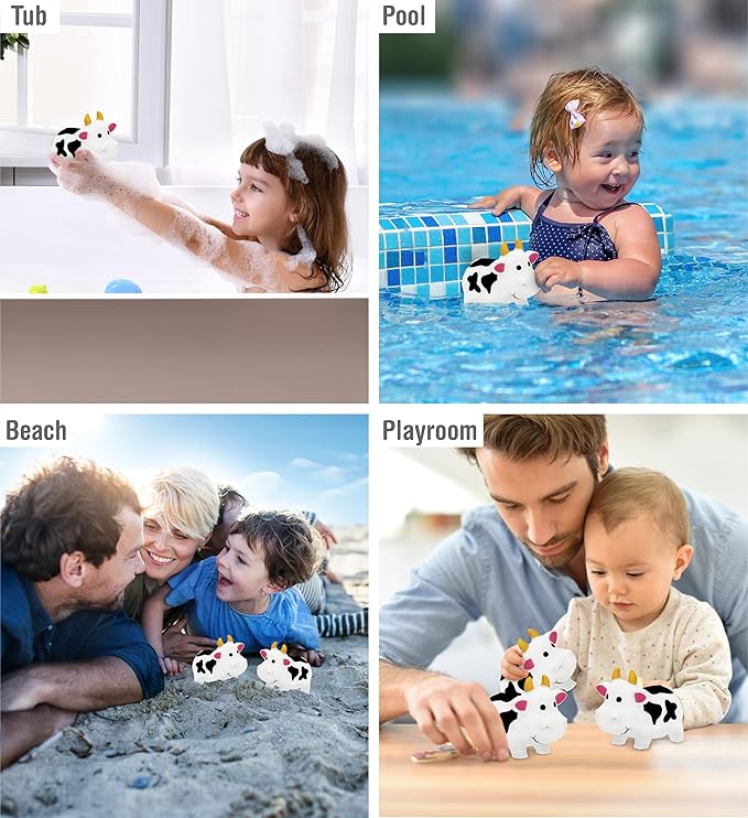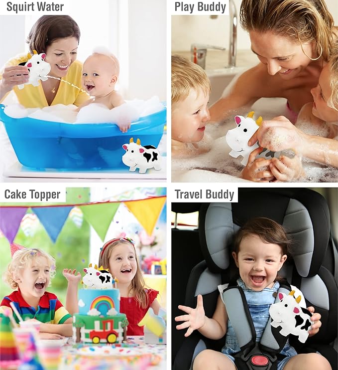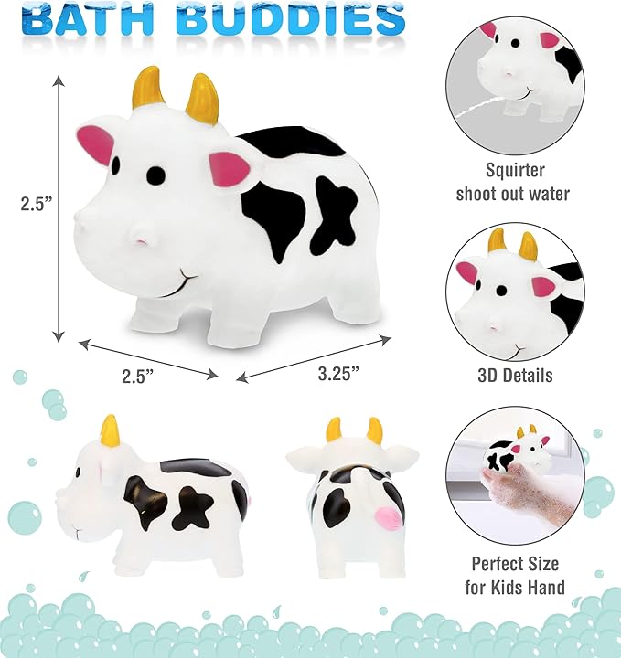 - THE COW BABY TOY IS PERFECT FOR KIDS WHO LOVE PLAYING WATER COW TOYS - Make your kids look forward to bathtime! Bath toy cows squirters are perfect floating toys for kids and baby shower bathtub toys, especially for kids who enjoy spending time in the water. Fun cow figure rubber farm bath toys to play and share with everyone in a tub or pool. The perfect bath cow toys for toddlers 1-3, these rubber bath toys bring endless giggles to little ones.