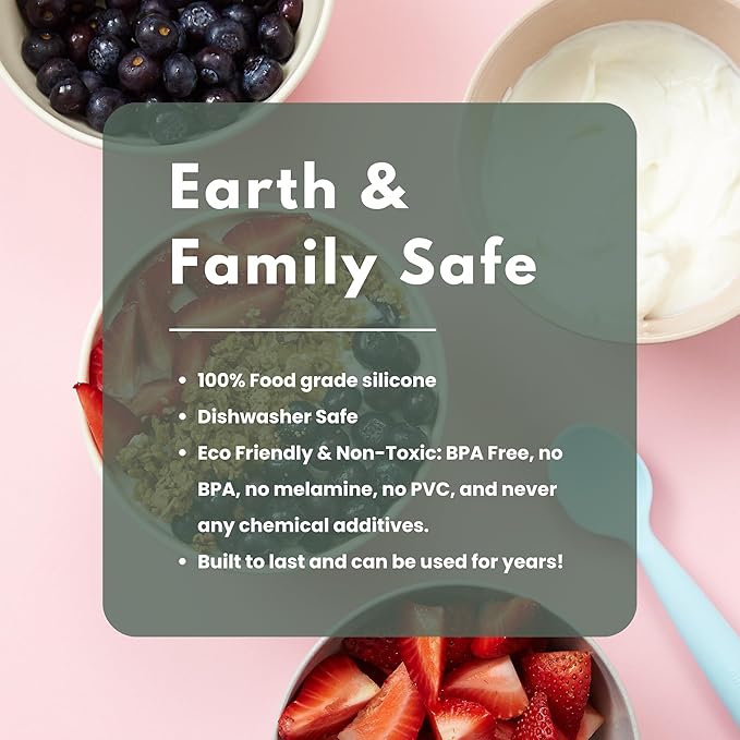 - ECO-FRIENDLY & SAFE FOR LITTLE ONES: Made from 100% food-grade silicone, these baby feeding spoon options are free from BPA, melamine, and harmful additives. Reusable and durable, these baby silicone spoon sets are soft and gentle on developing gums, ensuring a safe feeding experience for spoons for babies 6-12 months and beyond