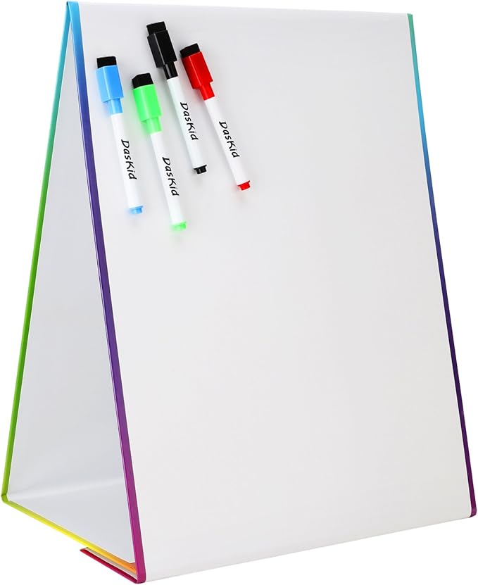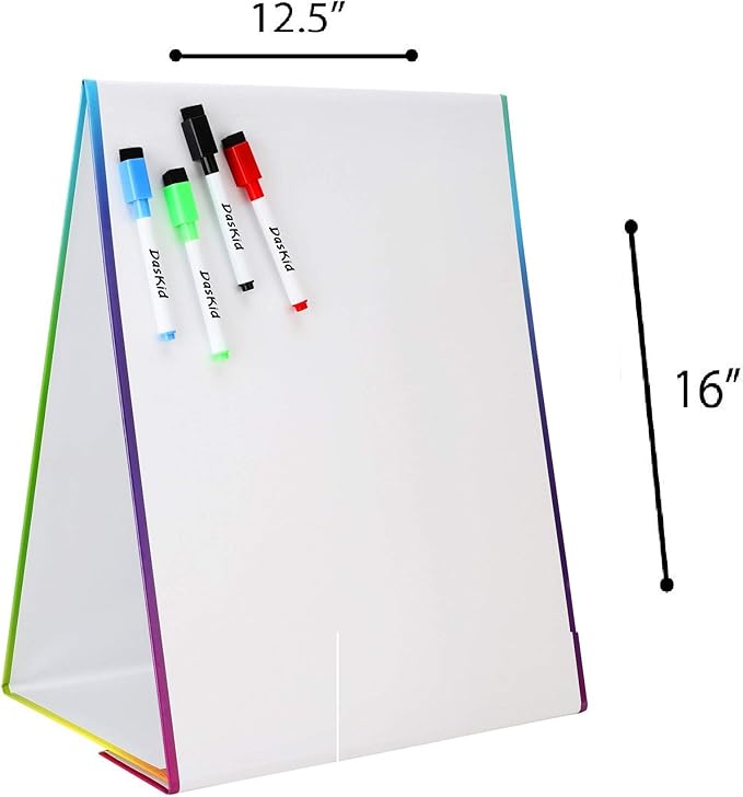 Tabletop Magnetic Easel & Whiteboard (2 Sides) Includes: 4 Dry Erase Markers. Drawing Art White Board Educational Kids Toy