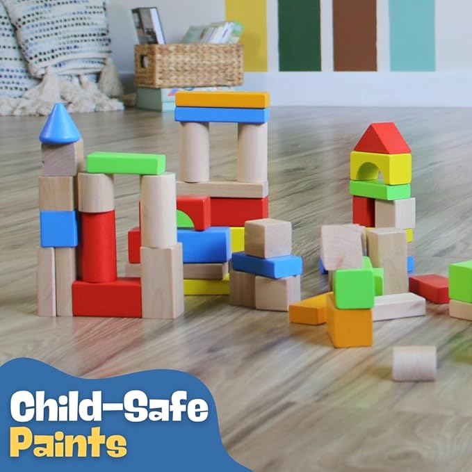 - ✔ Durable and Sustainable Wood - Each piece is carefully crafted to make sure there are no rough edges, ensuring safe play for kids and toddlers. Building blocks for toddlers are a great choice for any occasion and play area; home, classroom, school, daycare, party and birthday gifts. 100 piece wooden block set.