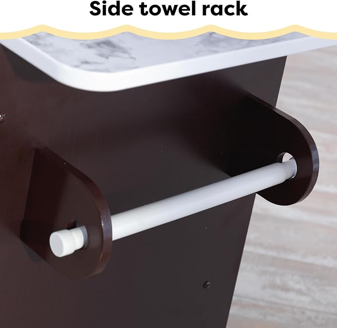 • REALISTIC LOOK: Tile-look backsplash in trendy gray with marble-esque countertops make this a dream play kitchen for kids. There's even a functional towel rack