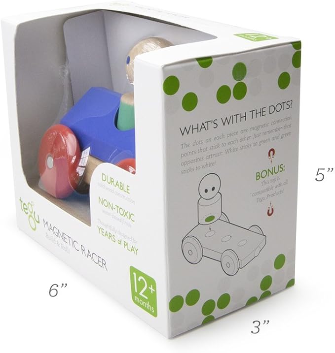 3 Piece Tegu Magnetic Racer Building Block Set, Blue Big Top