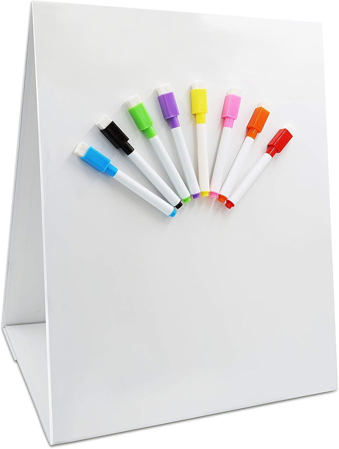 Magnetic Tabletop Desktop Easel &Whiteboard with Bonus 8X Dry Erase Markers. Double Sided and Self-Standing (16” X 12.5”)