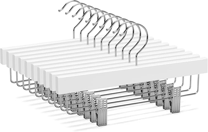 Nature Smile 11.8'' Kids Baby Toddler Children Solid Wooden Pants Hangers,Wood Skirts Hangers,Trousers Bottom Hangers with 2-Adjustable Clips Anti-Rust Hook Pack of 10 (White)