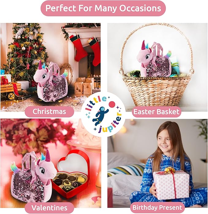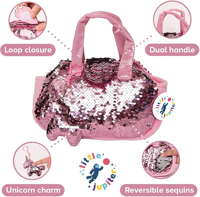 - Flippable Sequin Bag: Girls will love the mini pet bag with reversible sequins & charm. The handbag features colorful sparkles that flip from pink to silver. An awesome stuffed unicorn for girls 4 & up.