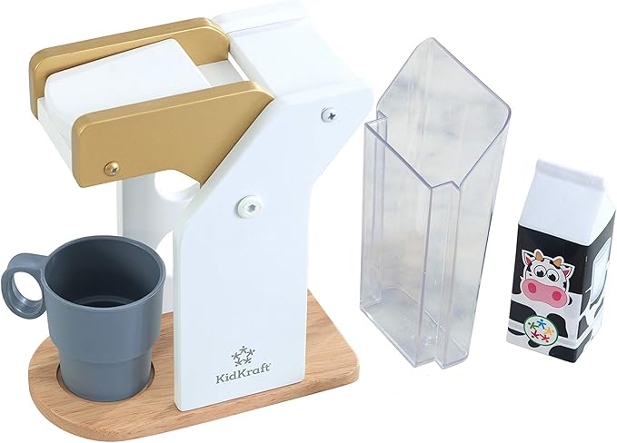 - MAKE PLAYTIME FUN - Jump start imaginations with the modern-looking KidKraft Coffee Set kitchen toy. Complete with a cup, spoon, sugar packets, milk and coffee pods, this is a perfect set for coffee aficionados.