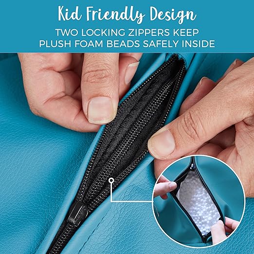 - BUILT TO LAST — features double-stitched seams for added durability, two safety zippers that prevent children accessing beads and soft leather-like material that easy to wipe clean after use
