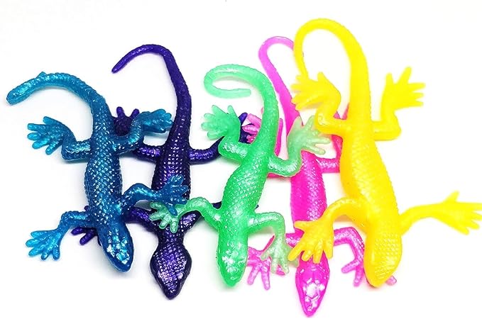 - Lizards come in a wide variety of colors and can be used very well for classroom prizes, pinata filler, or fill-up the Easter basket stuffers. There are twelve different colors: red, blue, light green, turquoise, white, black, green, yellow, transparent, pink, orange, and purple, strictly divided into the package.