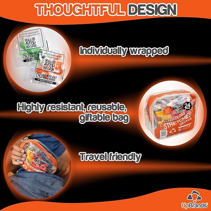 - Great sensory fidget toys for Easter Basket Stuffers. The lizards are individually wrapped and will easily fit in plastic Easter Eggs used for Easter hunt. UpBrands Stretchy Lizards Toys 24 pack - an excellent kit for birthday party favors for kids. Children will play with these stretchy rubber lizards toys and will love to share them in goody bag stuffers.