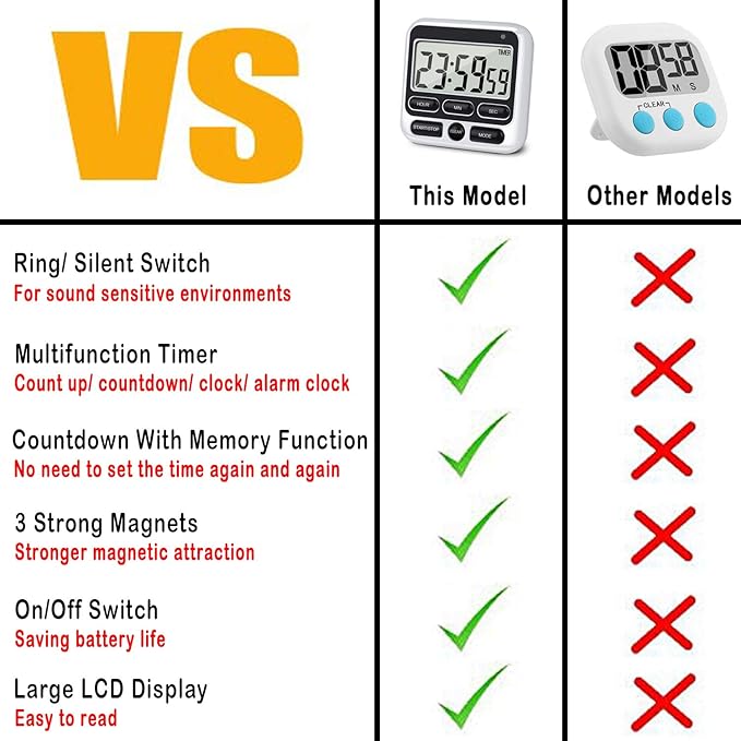 - Silent Mode & Ring Mode: Available for More Situations, We all dread the situation where our timer rings in the middle of a meeting, class or sound sensitive environments, mute & flash mode is the solution to that problem