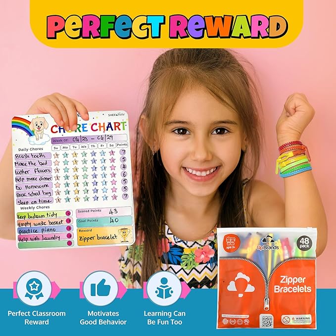 UpBrands 48 Prizes for Kids Zipper Bracelets 7 ½”, Fidget Party Favors for Kids, Sensory Toys Bulk Set, Neon Colors, Birthday Kit, Easter Egg, Treat Bags & Pinata Fillers