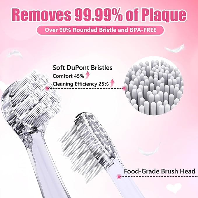- Toddler Electric Toothbrush Specifically for Kids Aged 0-3: Babies start to sprout their first tooth around six months. This baby electric toothbrush features a soft LED light to help locate food residue and plaque. It is equipped with a 16,000 VPM motor (A+) and bristles with a roundness rate of over 90% (A+), protecting their mouths from cuts. It effectively prevents plaque and cavities caused by milk, with a cleaning efficiency 3.5 times higher than manual toddler toothbrushes.