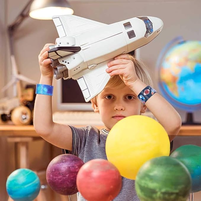 Lorfancy 48 Pcs Space Slap Bracelets Space Toys with Planet Design Kids Bracelets Snap Bands Class Prize Outer Space Party Decorations Favors
