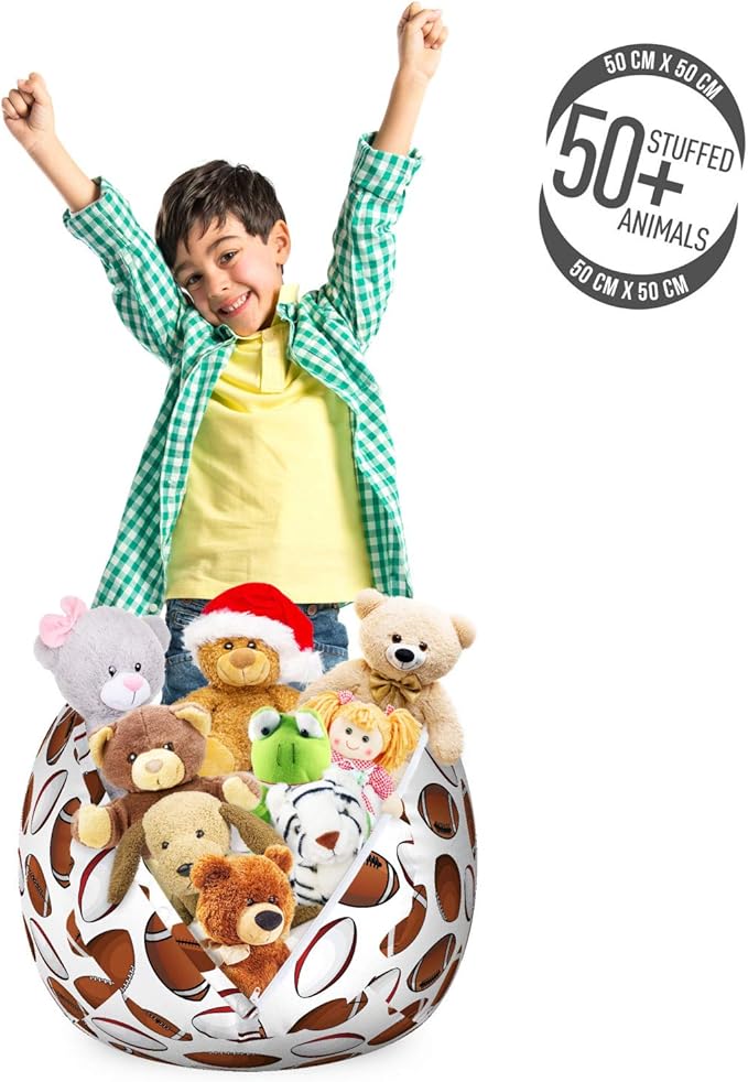 - Small size - You can stock over 50 plush toys in bean bag. Measurements: 22" W X 15" H when full.