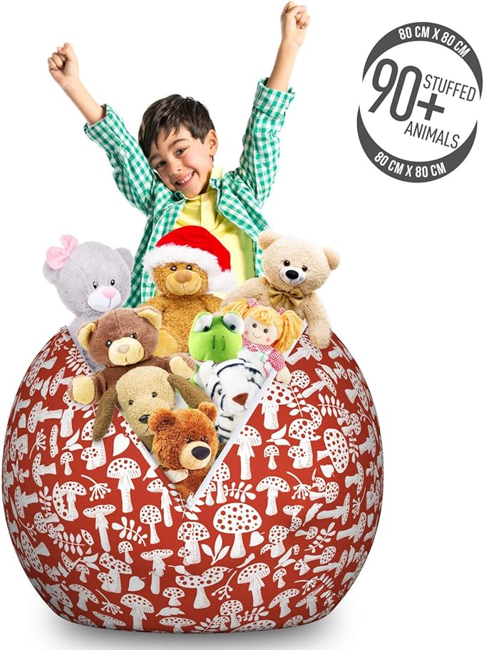 - Large size - You can stock over 90 plush toys in bean bag. Measurements: 30" W X 23" H when full.