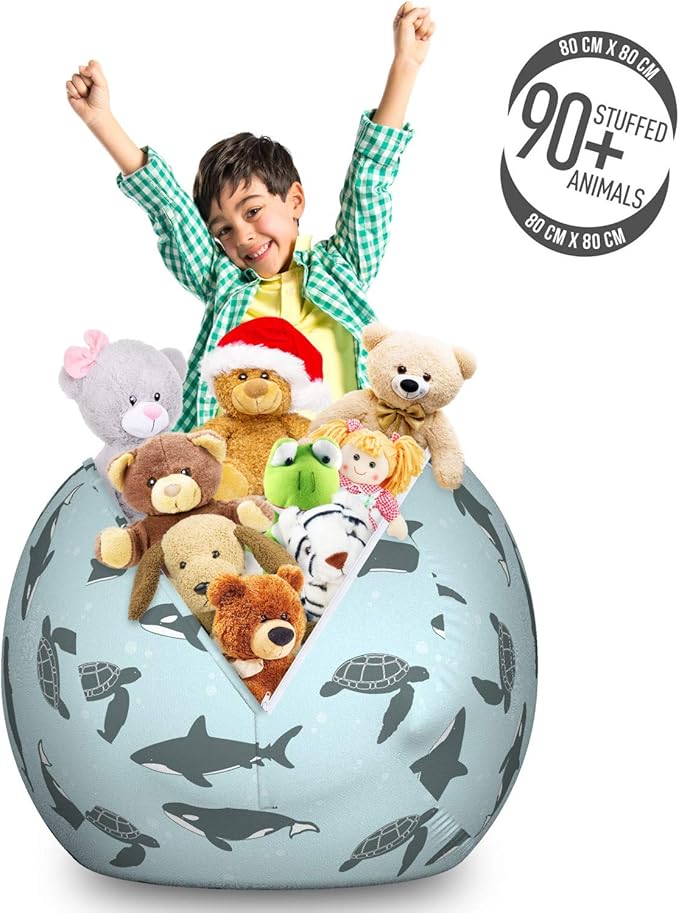 - Large size - You can stock over 90 plush toys in bean bag. Measurements: 30" W X 23" H when full.