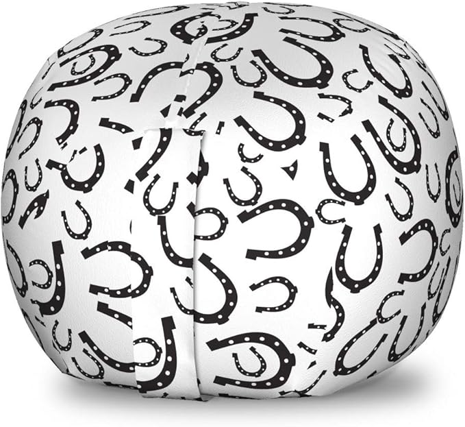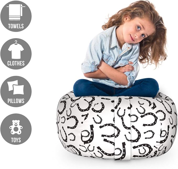 Lunarable Horseshoe Storage Toy Bag Chair, Irregularly Sized with Polka Dots and Symbolic Curves and West Themed, Stuffed Animal Organizer Washable Bag, Small Size, White and Black