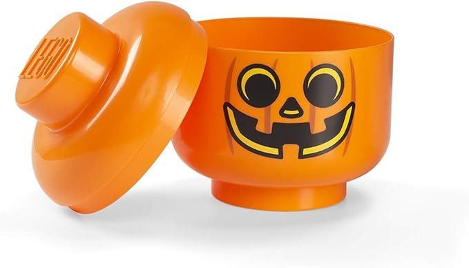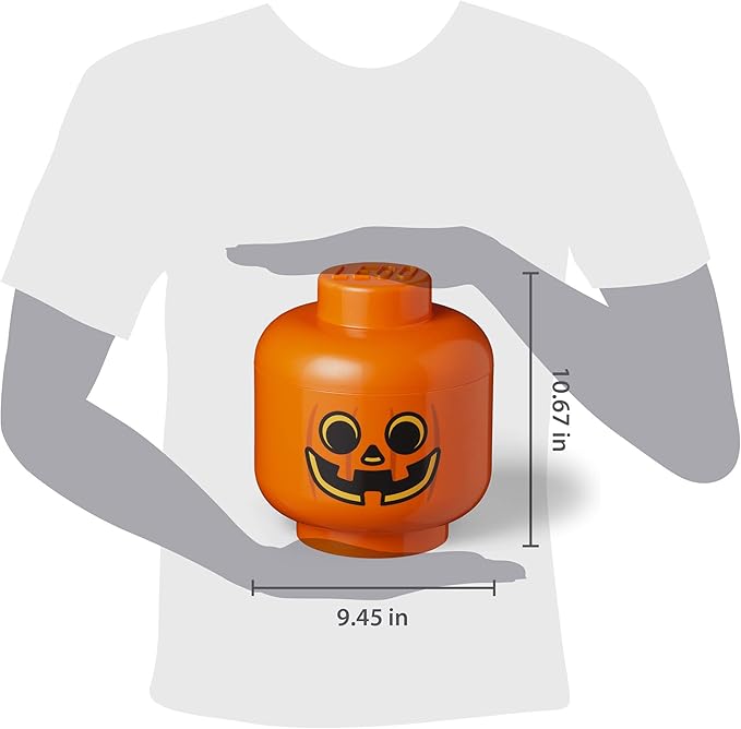 Room Copenhagen, LEGO Storage Heads Stackable Storage Container - Buildable Organizational Bins for Kid’s Toys and Accessories - 9.45 x 9.45 x 10.67in - Large, Pumpkin, Holds 500 Bricks