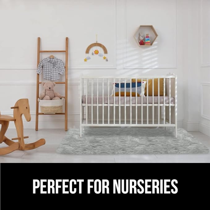 Gorilla Grip Fluffy Faux Fur Rug, 4x6, Machine Washable Soft Furry Area Rugs, Rubber Backing, Plush Floor Carpets for Baby Nursery, Bedroom, Living Room Shag Carpet, Luxury Home Decor, Light Gray