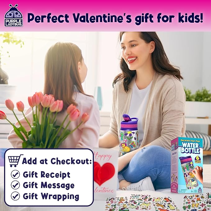 Purple Ladybug Decorate Your Own Water Bottle for Girls - Includes Trendy Stickers, Easter Gift for Ages 5-8, Birthday or Valentines Gift, Great for Little Girls