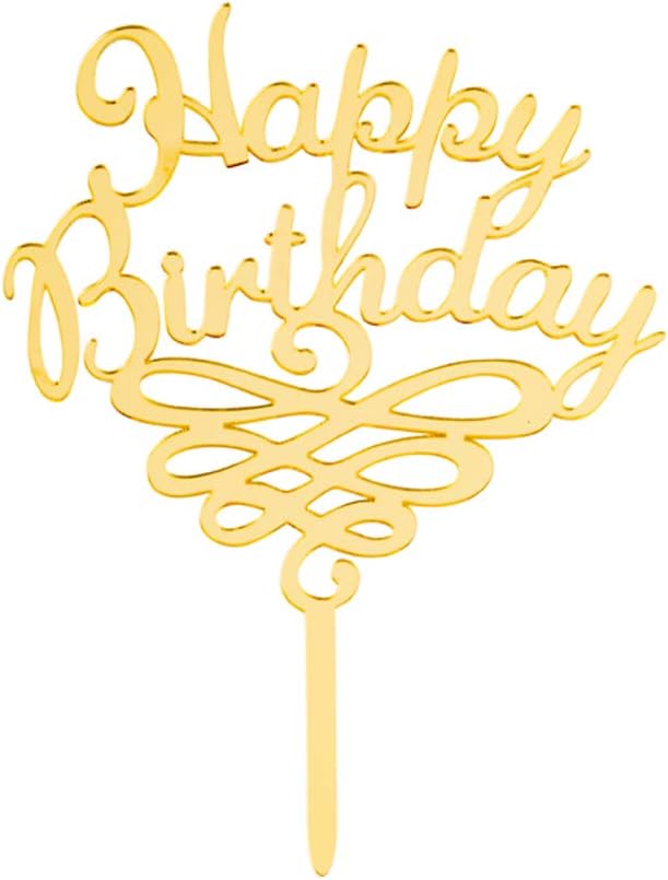 Restaurantware Top Cake Happy Birthday Cake Topper 1 Mirrored Birthday Cake Decoration - With Swirls Durable Gold Acrylic Birthday Topper For Cakes Party Decoration for Birthday