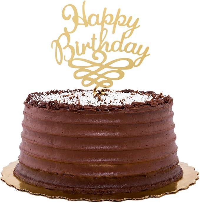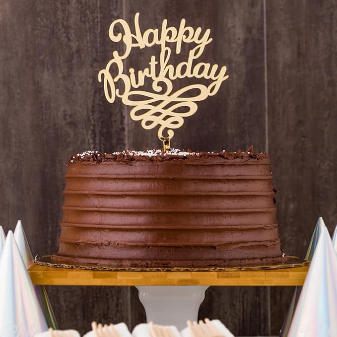 - PERSONALIZE YOUR PARTY: Make it a fun celebration with this happy birthday cake topper. The added stylized swirls add a touch of sophistication and are certain to put smiles on any face.