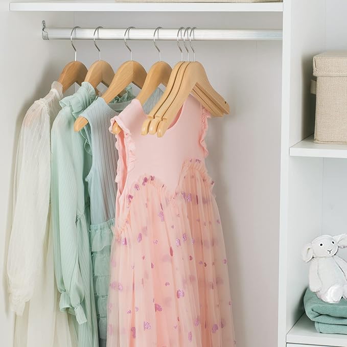 Nature Smile Juniors Preteen Older Children Wooden Coat Hangers 14 Inches Wood Dress Shirt Jacket Hangers with Anti-Rust Hook (20 Pack Natural)
