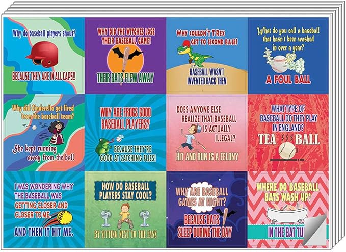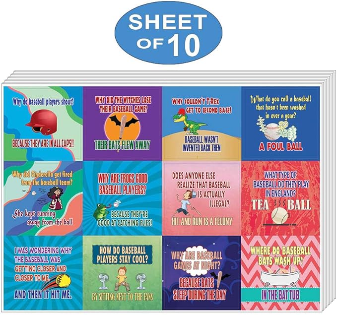 Creanoso Playing Baseball Funny Sports Jokes Stickers (10-Sheet) – Total 120 pcs (10 X 12pcs) Individual Small Size 2.1 x 2. Inches, Cool Themes Designs, Decor Art for Boys & Girls, Children, Teens