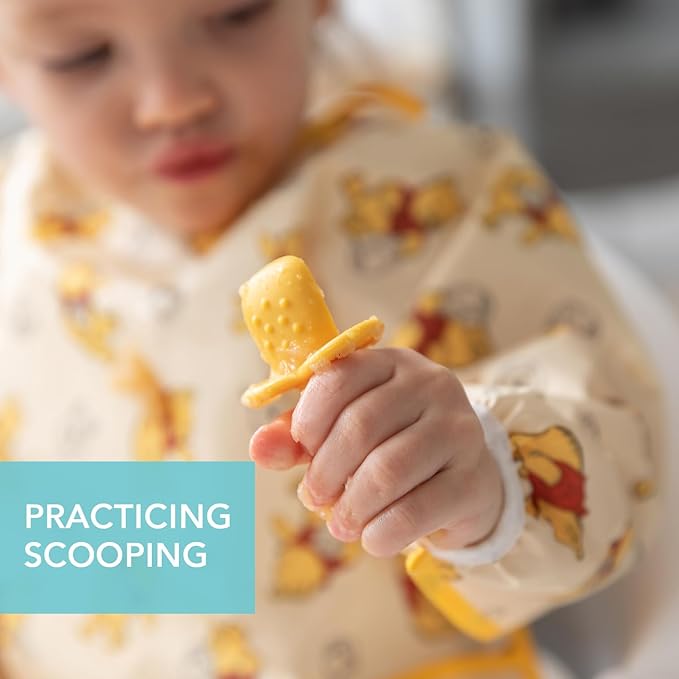 Bumkins Disney Baby Utensils Set, Chewtensils Silicone Spoons for Dipping, Self-Feeding, Baby Led Weaning, Trainer Learning First Stage Stage Eating, Fork and Spoon, Babies 6 Months, Winnie the Pooh