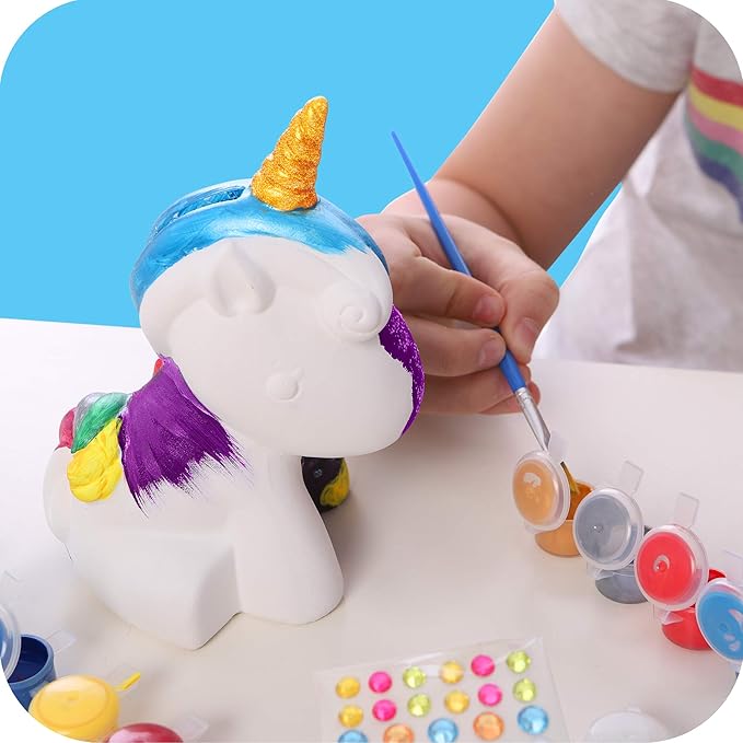 - Includes a DIY easy to paint ceramic unicorn coin bank you can decorate with your favorite colors.