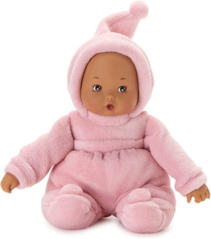 - Details: The pink fuzzy sleeper makes this doll perfect for snuggling; Soft fabric body and soft vinyl head are perfect for little hands to grasp and pull; Features medium skin tone and brown eyes