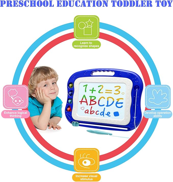 - GIFT TODDLER TOYS FOR KIDS - The magnet drawing board is a ideal gift for kids boys girls age 3 4 5 6 7 year old on birthday, Christmas or other rewards. Children can draw, write and play games on this toddler toy pad on home, outdoor, in the car or travel. Enjoy drawing time anytime and anywhere with this magna writing board