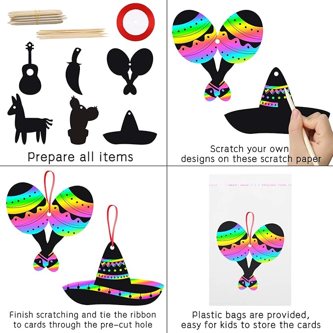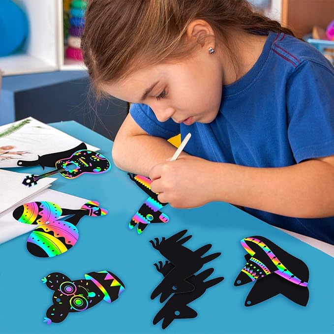 - WIDE APPLICATION: Mexican Scratch Cards are suitable for kids painting class, school art craft project to stimulate children's creativity and imagination. Also a favor for any age of birthday party and Mexican -themed party, scratch card competition, etc.