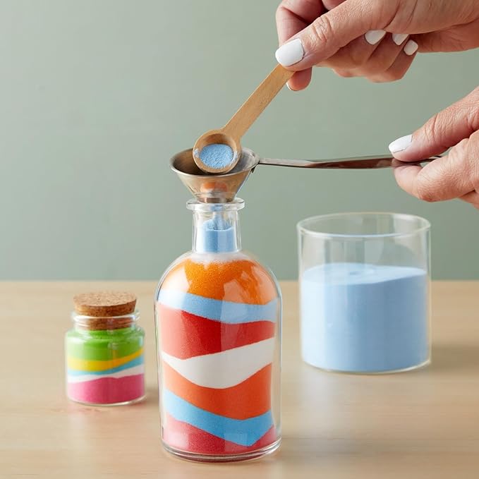 - Sand Art Kit: Use this set of art sand refill bags to encourage creative thinking and problem-solving skills; rainbow sand will help with self-expression, motor skills, concentration, and imagination