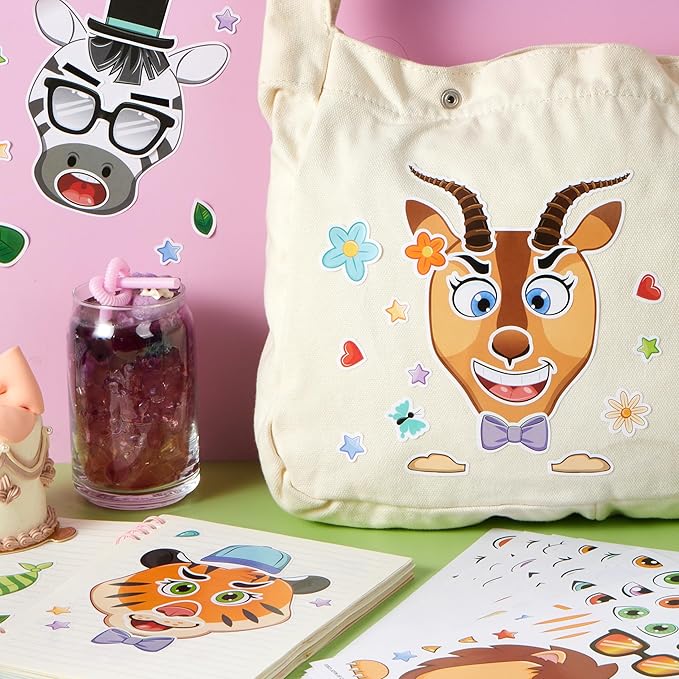 JOYIN 36PCS 9"x6" Make a face Stickers for Kids, Make Your Own Safari Animal Stickers, Jungle Party Favors Kids Crafts, Goodie Bags Stuffers, Classroom Rewards