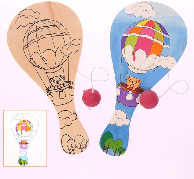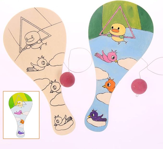 - The paddle ball has unfinished cartoon picture, your kids can choose to paint it then paly it or it with fun. Your kids can make their own unique paddle ball.