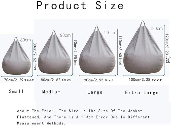 - Size: S:70x80cm/27.5x31.4"; M:80x90cm/31.4x35.4"; L: 90x110cm/35.4x43.3''; XL: 100x120cm/39.3x47.2". Available in multiple colors, no filling, large enough to accommodate all shapes & sizes, different sizes and colors meet your needs, great for sitting, napping, and lounging.