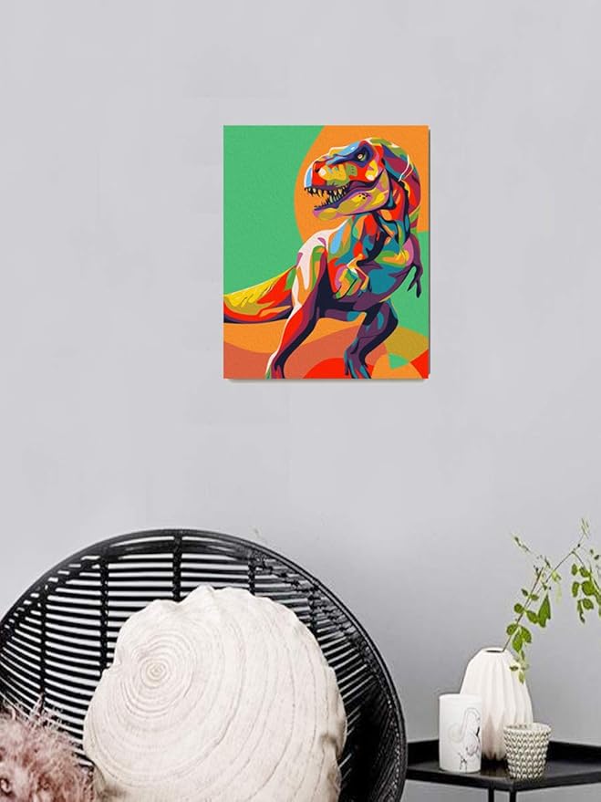 Elftoyer Paint by Numbers for Kids & Adults & Beginner, DIY Canvas Painting Gift Kits for Home Decoration - Colorful Dinosaurs 12 x 16 inch (Wooden Frame)